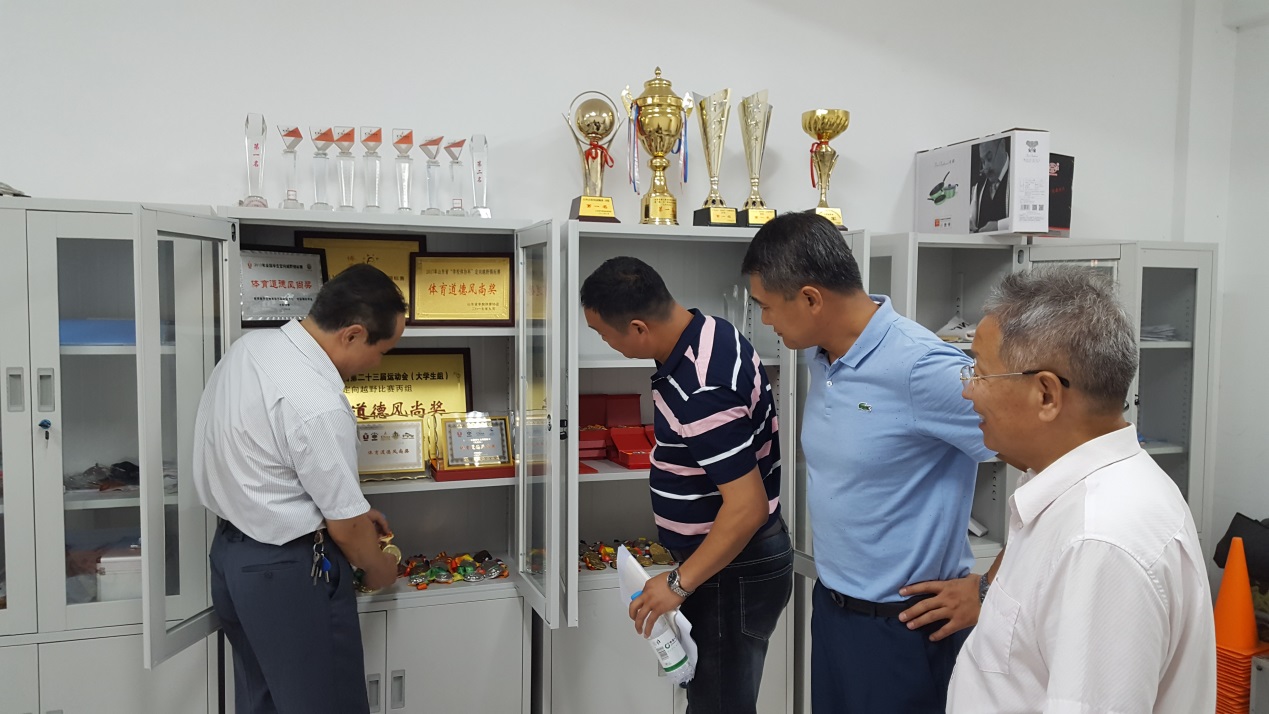 随后,陈雨海在体育部领导班子成员陪同下对体育部办公场所、会议室、健身房、体测实验室、器材库房、球类场(足球、网球、篮球、排球)、乒乓球活动室等我校公共体育教学场地及设施建设、维护情况进行了全面检查,重点关心和询问了现有场地设施资源是否符合教学需要,以及新建综合体育馆施工期间体育教学开展方案。