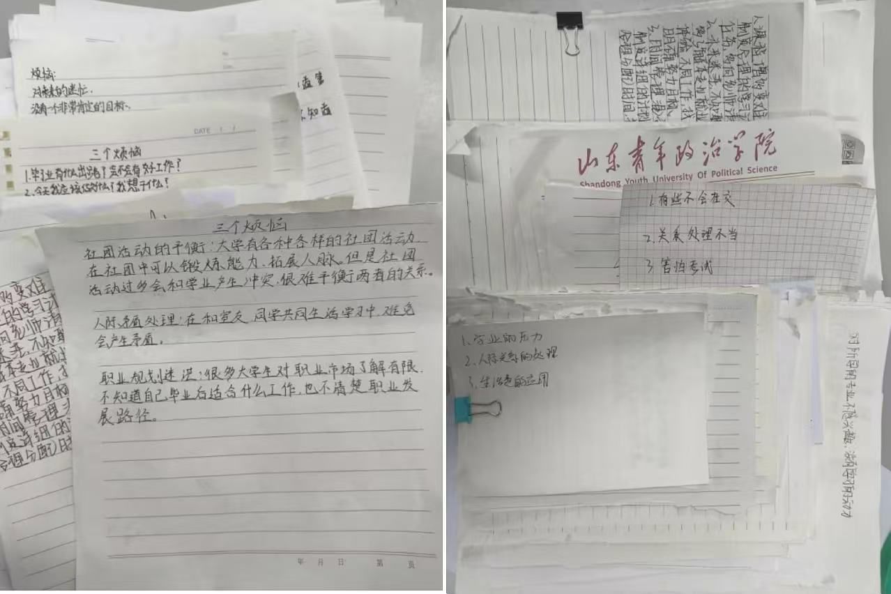 本次活动通过心灵信箱、情景模拟和分享讨论等多种互动形式开展。活动过程中,学生们通过将心理困惑写在折叠成信封形状的纸张上,投进“心灵信箱”,实现匿名分享。