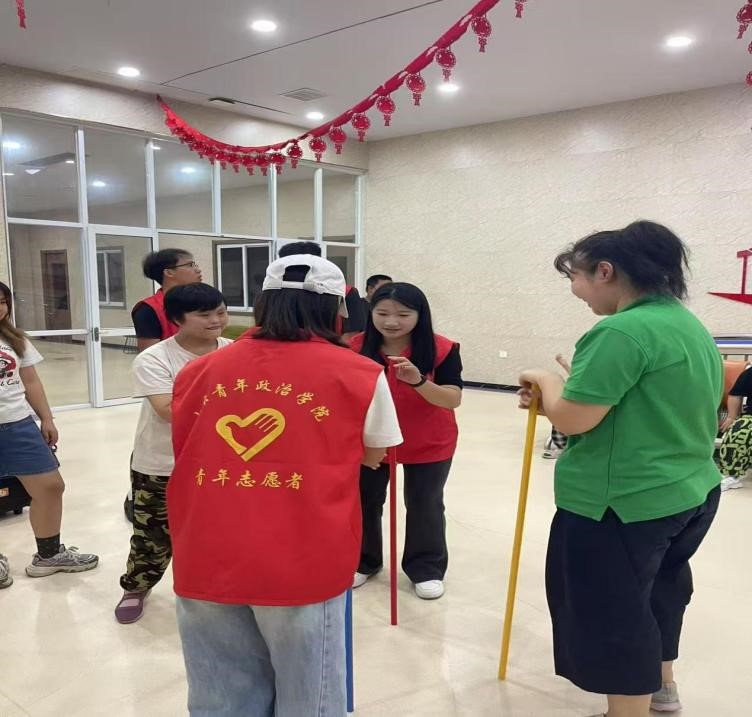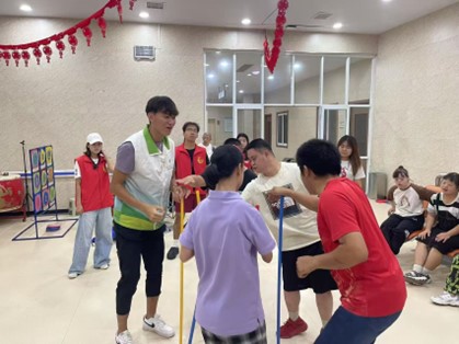 8月6日,实践队员赴济南佳美残疾人服务中心,与这里的孩子们展开了一场充满欢笑与温暖的互动之旅。实践过程中,志愿者们精心准备了一系列趣味十足的互动游戏,如接力后传、趣味沙包等,既考验体力又锻炼团队协作能力。互动过程中,志愿者们悉心指导、耐心帮助,组织孩子们相互配合,彼此鼓励,共同完成每一个游戏项目,温暖的氛围弥漫在整个服务中心。活动最后,志愿者们为孩子们送上了精心准备的慰问品,为他们送去欢呼与掌声。