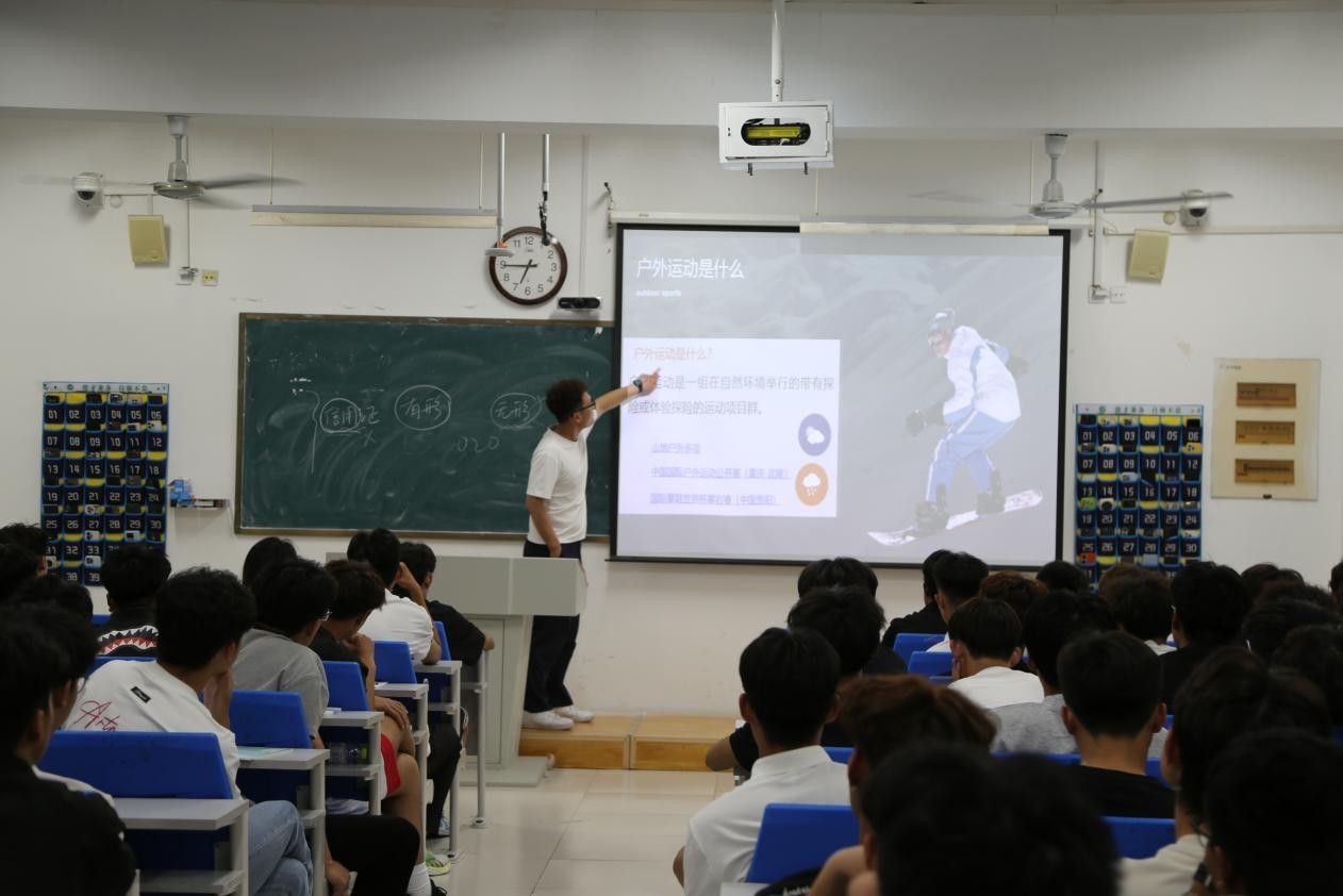 山地户外专项教师闫伟从户外运动的行业生态切入,围绕产业前景、培养框架与学习路径展开系统阐述,帮助新生快速构建全景认知。他结合近期落地的典型项目,将抽象知识转化为可感知的应用场景,生动呈现了理论与实践的融合价值。针对学业重点、技能锤炼与职业发展等新生关切,他提出具体可行的建议,并强调“实践是专业成长的核心”,鼓励同学们以实践为桥梁,将课堂所学转化为实战能力,在真实场景中深化专业认知、提升竞争力。