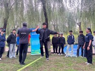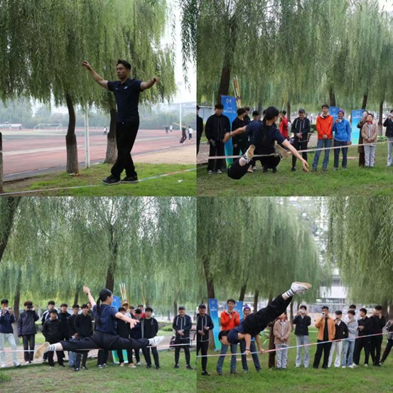 在随后的亲身体验中,同学们分组尝试扁带运动。从初上扁带时的摇晃不定,到在专家“目视前方、核心收紧、手臂维衡”的指导下逐步掌握平衡要领,参与者不断实现自我突破。每一次独立迈步都伴随着掌声与鼓励,运动的成就感洋溢在每个人心中。