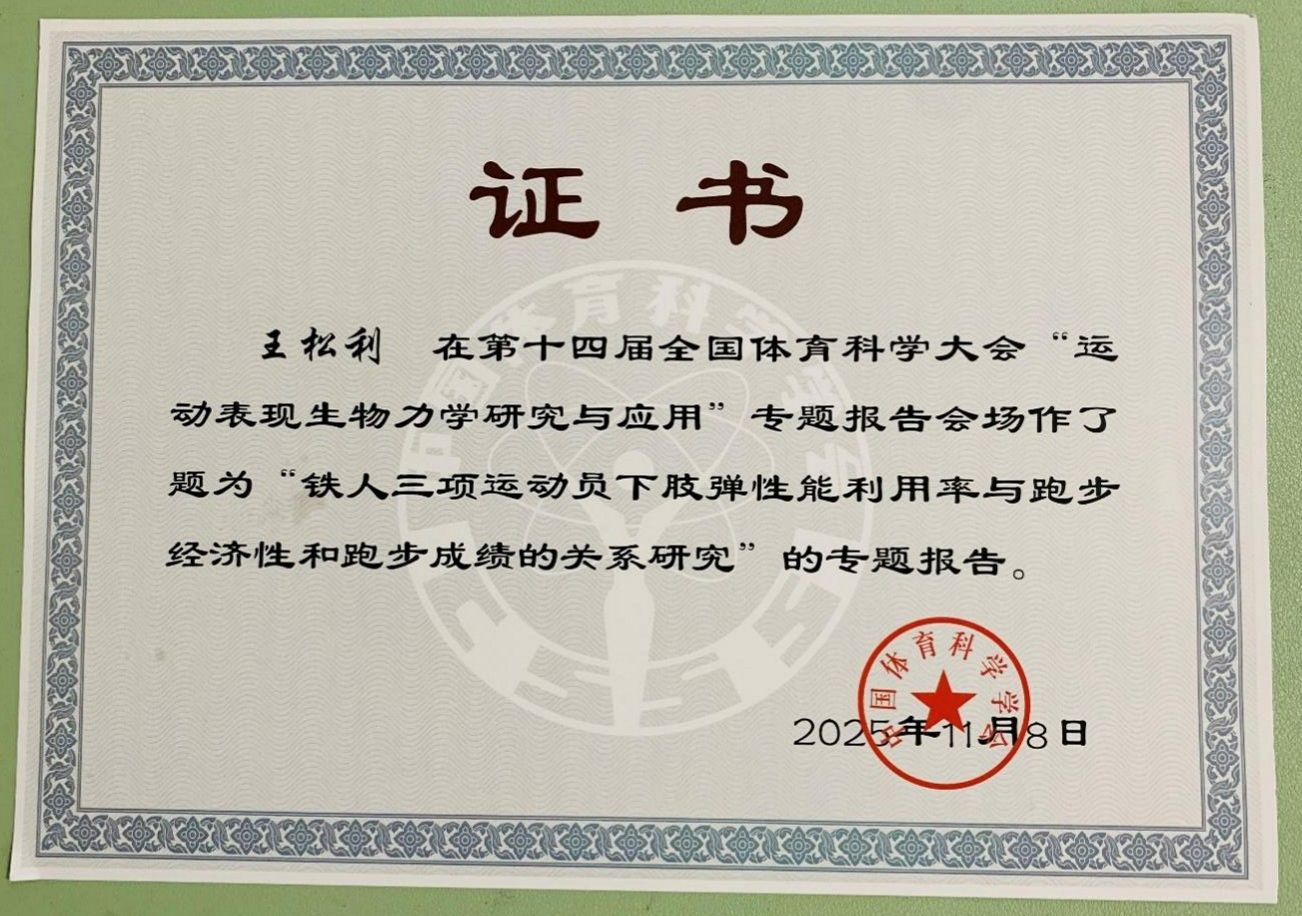 11月8日,第十四届全国体育科学大会在武汉召开。作为我国体育科技领域最具权威性和影响力的学术盛会,本次大会汇聚了全国体育科研领域的顶尖力量。体育学院教师王松利作为参会代表在“运动表现生物力学研究与应用”专题报告会场作了精彩的专题报告,展示了学院在运动生物力学领域的科研实力。