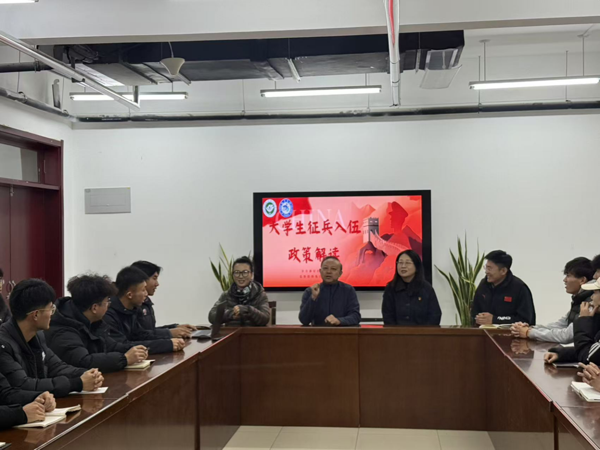 为积极响应国家大学生征兵号召,帮助同学们深入了解参军入伍相关政策,12月25日,体育学院在学院会议室召开大学生参军入伍政策解读会。本次活动特邀学校武装部副部长李洪担任主讲嘉宾,学院党委副书记张冰、团总支书记吴磊、辅导员庞茂勇以及有意向参军的学生参加活动。