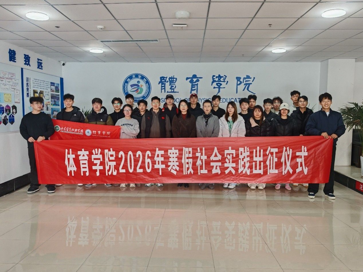 1月9日下午,体育学院隆重举行2026年寒假社会实践出征仪式。经过前期的广泛动员与精心组织,学院共成功组建了红色传承、社区服务、文化传承等五大类共计23支实践队伍,将分赴济南、青岛、德州等地开展实践活动。学院党委副书记张冰、团总支书记兼学工办主任吴磊、辅导员庞茂勇及各团队代表出席仪式。