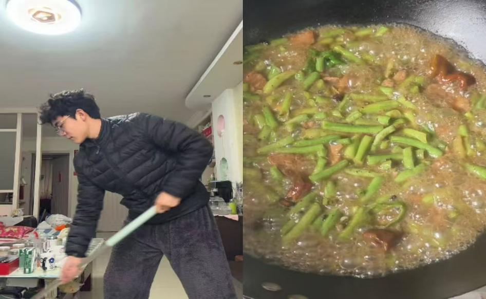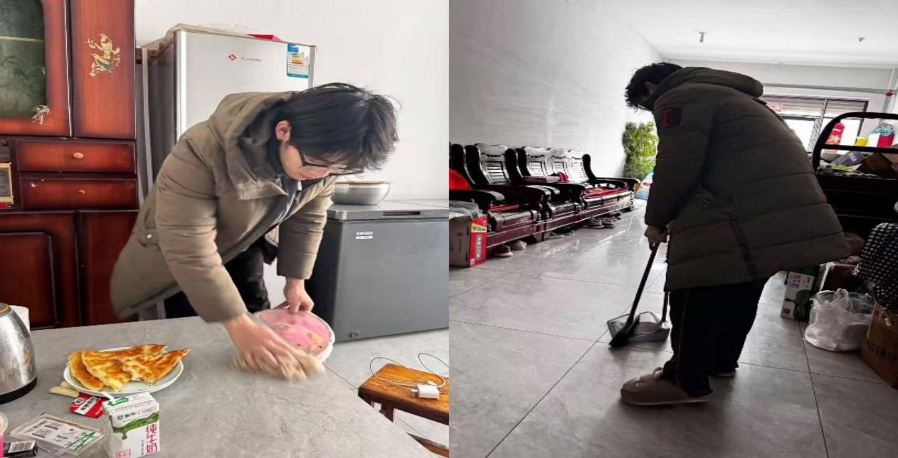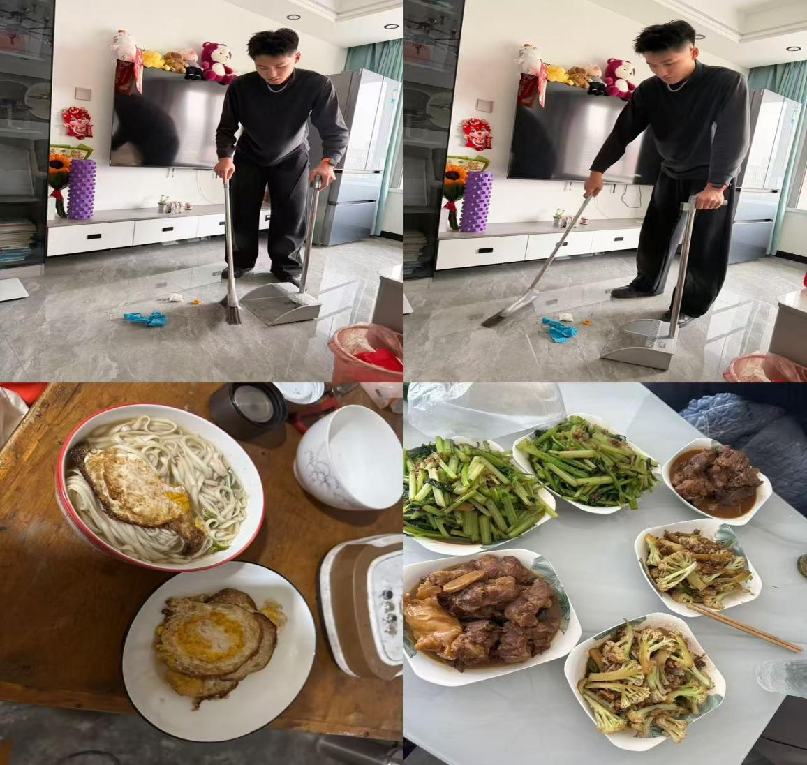 24级休闲体育2班王泽硕烊主动承担拖地、做饭等家务劳动,在反复的拖地动作中学会坚持,在从手忙脚乱到熟练掌勺的厨艺学习中感受成长与快乐。他从平凡的家务中读懂幸福生活源于点滴付出,立志始终躬身劳动、勤于实践,在小事中锤炼本领,用劳动书写青春担当。