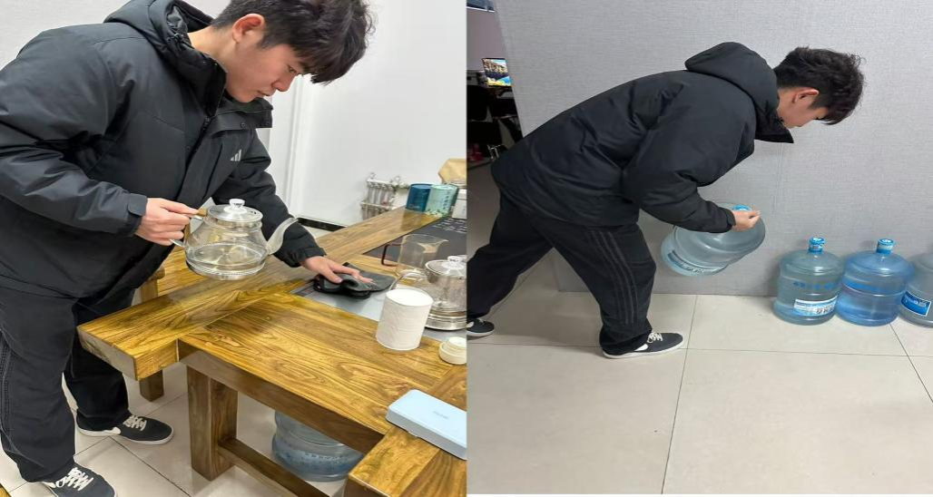 24级休闲体育1班周智鸿从身边小事做起,每日认真擦拭书桌、餐桌,在反复的擦拭动作中体会劳动带来的踏实与成就感,也更加理解家人操持家务的不易,学会珍惜整洁的生活环境。他坚信劳动不分大小,实干成就担当,将始终在点滴小事中锤炼品格、提升本领,用实际行动诠释青春担当。