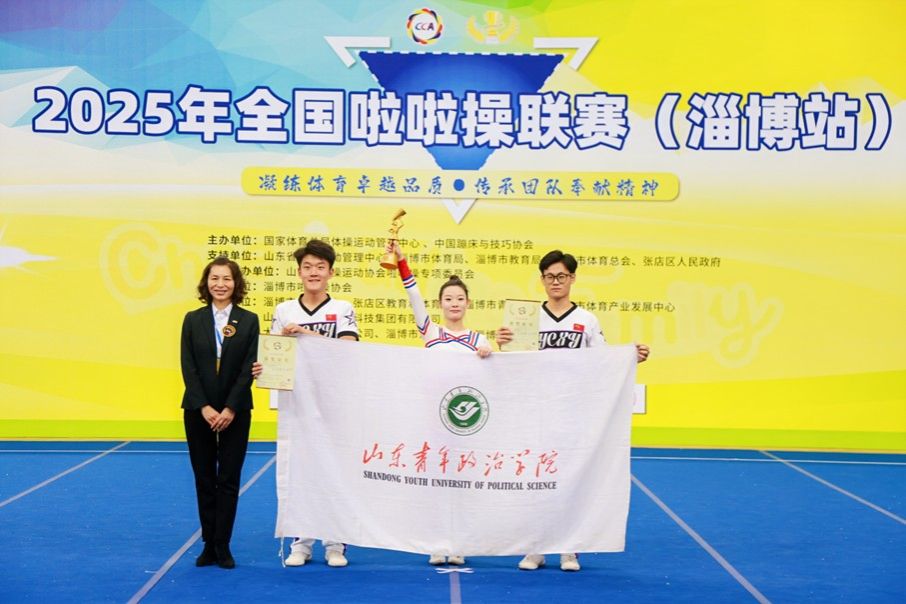 11月1日,2025年全国啦啦操联赛(淄博站)在淄博市体育中心综合馆拉开帷幕。我校“青春山青啦啦队”在为期两天的激烈角逐中奋勇拼搏,以饱满的青春激情与过硬的专业素养,一举斩获公开青年甲组技巧自选(4级)动作冠军、技巧2级规定动作冠军、爵士规定动作2025版-超级B动作冠军,并摘得双人街舞亚军,战绩斐然,闪耀赛场。